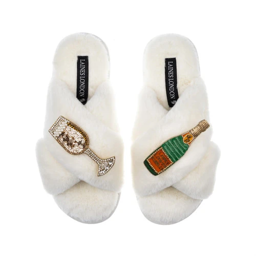 Classic Laines Slippers With Laines Champers & Glass Brooches