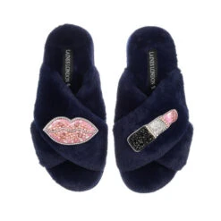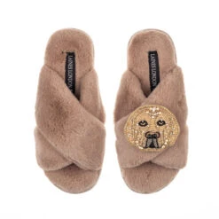 Classic Laines Slippers With Mr Beefy The Bulldog & Dog Mum Brooches