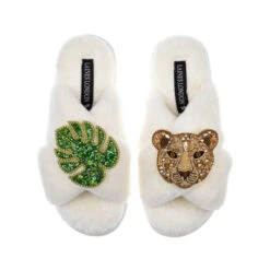 Classic Laines Slippers With Parma Violet & Drumstick Brooches