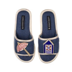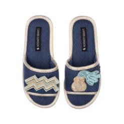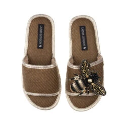 Straw Braided Sandals With Black & Gold Shell & Octopus Brooches