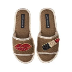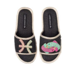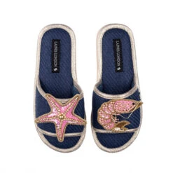 Straw Braided Sandals With Pink & Gold Starfish & Prawn Brooches