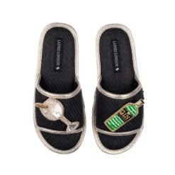 Straw Braided Sandals With Beach Hut & Beach Sign Brooches