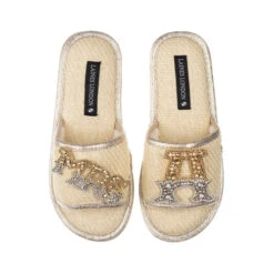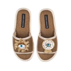 Complete with handmade embellished removable brooches, our signature gold binding and a terry towelling lining on the inside of the strap to offer you the ultimate comfort.