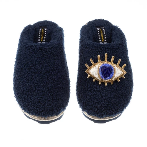 Teddy Closed Toe Slippers With Blue Eye Brooch