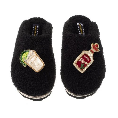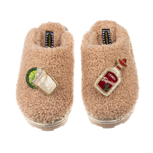 Teddy Closed Toe Slippers With Tequila Slammer Brooches