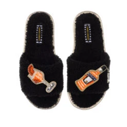 Teddy Towelling Slipper Sliders With Tequila Slammer Brooches